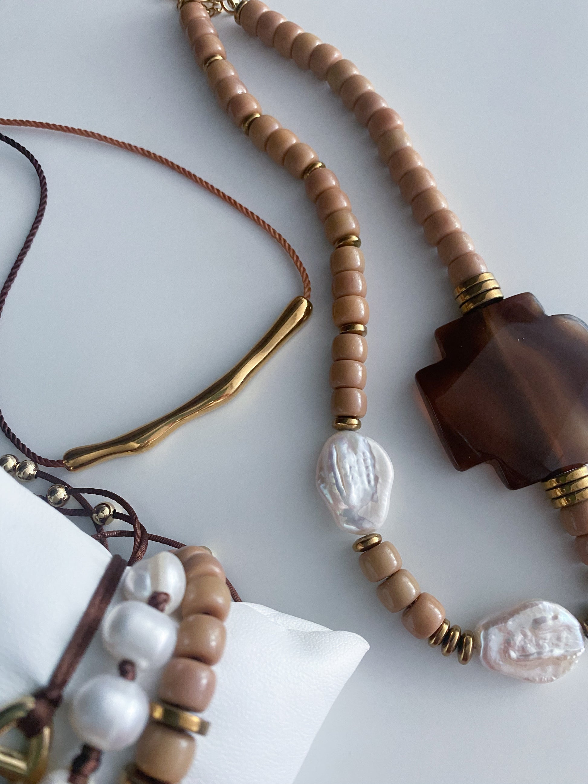 - Materiales: piedras cristal, ágatas, perlas agua dulce y acero inoxidable.