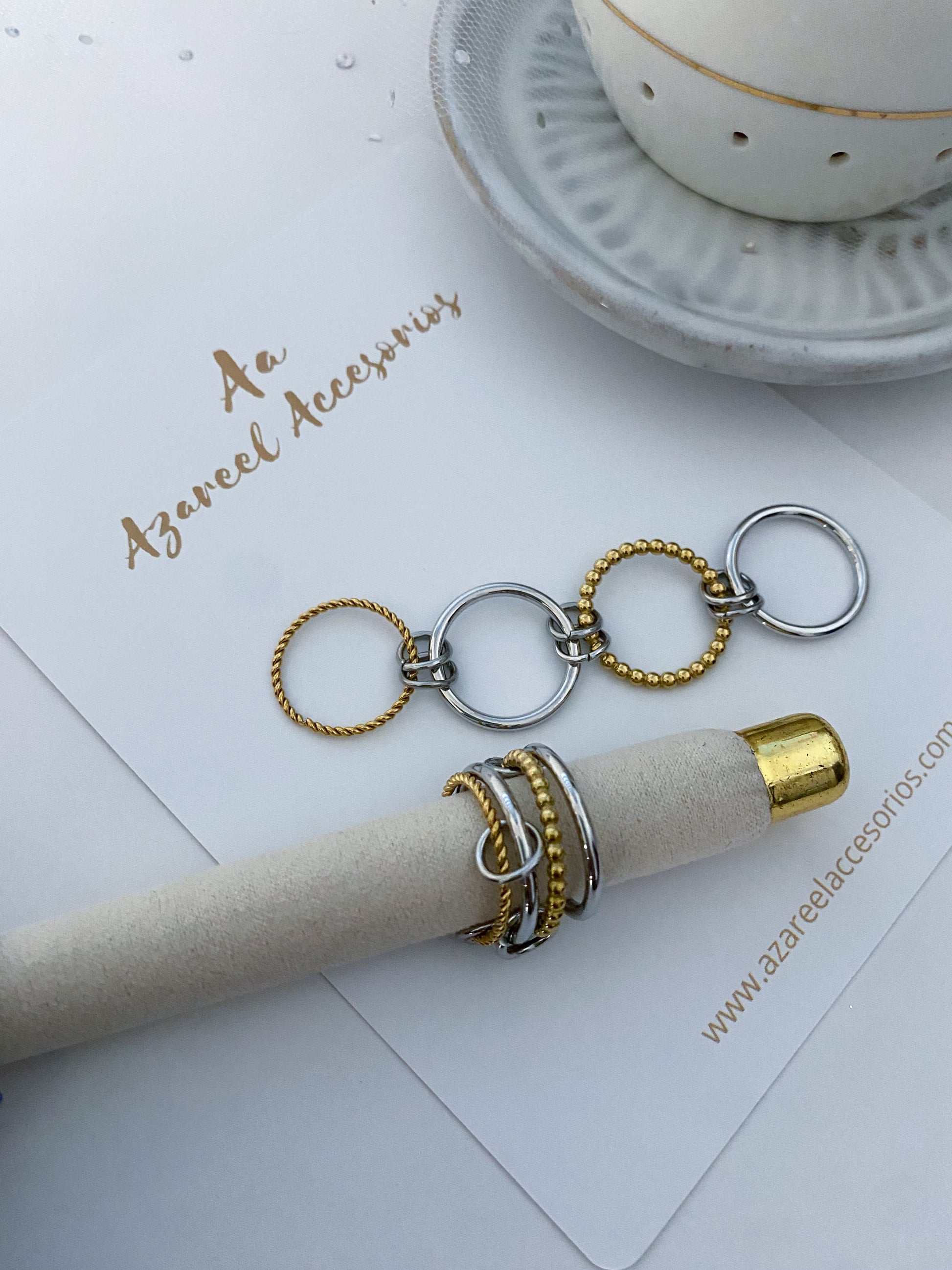 - Una sortija hermosa, compuesta de 5 aritos unidos, formando una sola pieza.